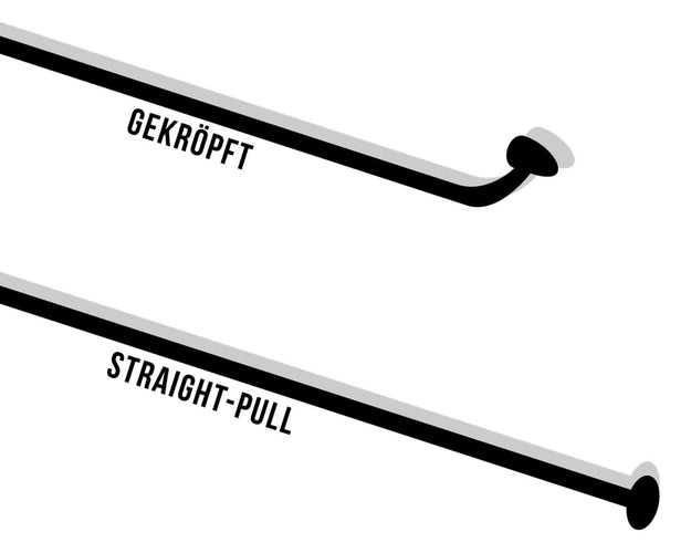 Bei der Speichenaufnahme wird zwischen straight-pull Speichen und gekröpften Speichen, auch unter J-Bend bekannt, unterschieden. In der Qualität unterscheiden sich beide Arten grundsätzlich kaum.