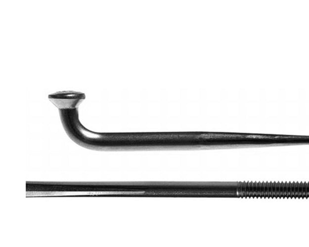 Gekröpfte Speichen sind die herkömmlichen Speichen mit einem gebogenen Ende und einem flachen Speichenkopf. Das andere Ende der J-Bend-Speiche ist mit einem Gewinde versehen, auf das der Nippel geschraubt wird.