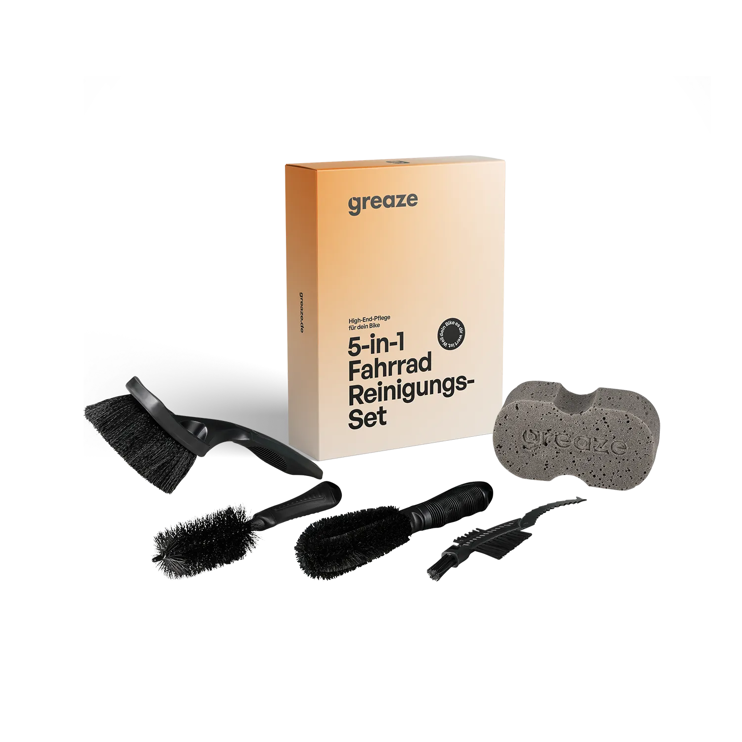 Fünf praktische Bürsten für die gründliche Reinigung von Rahmen, Antrieb und schwer erreichbaren Stellen. Ideal abgestimmt für eine effektive, materialschonende Reinigung – kompakt im Format, vielseitig im Einsatz.