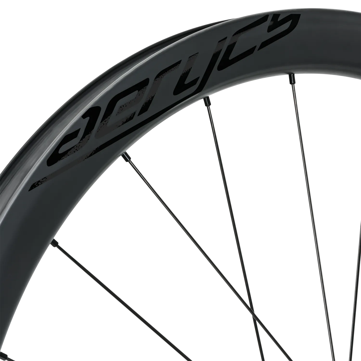 Unsere Laufräder kommen ohne klassische Aufkleber aus – stattdessen wird das Logo in einem speziellen Veredelungsverfahren sichtbar gemacht: Die glänzende Carbonoberfläche bleibt im Logobereich unberührt, während der Rest der Felge mit mattem Lack überzogen wird. So entsteht ein eleganter Matt-Glanz-Kontrast, ganz ohne aufgeklebte Elemente. Das spart Gewicht, verhindert Abblättern und sorgt für eine dauerhaft aerodynamische, hochwertige Optik – das i-Tüpfelchen am Laufrad.