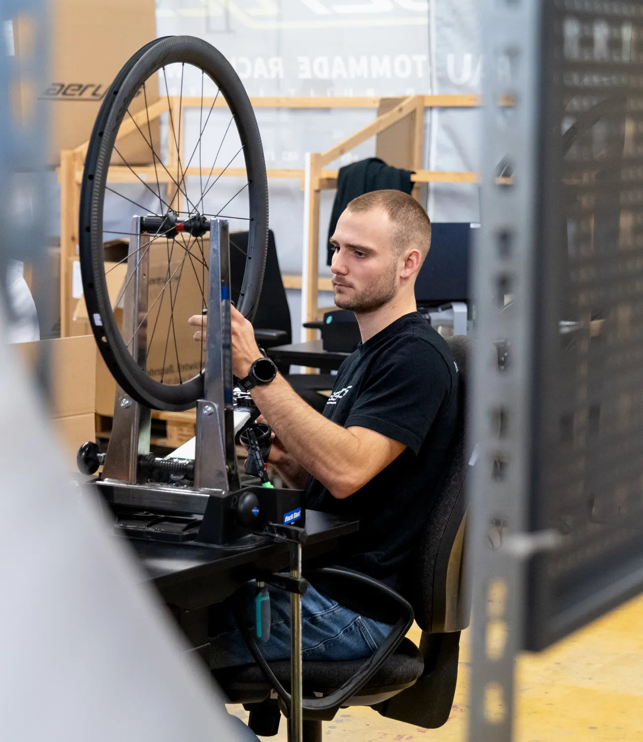 In unserer Werkstatt im Herzen Norddeutschlands wird jeder Handgriff selbst gemacht. Mit viel Erfahrung und Leidenschaft setzen wir die einzelnen Komponenten zusammen. Jede Speiche wird von Hand eingespannt, jeder Zentriervorgang mit höchster Präzision durchgeführt. Das Ergebnis: Laufräder, die perfekt laufen und dich zuverlässig ans Ziel bringen.