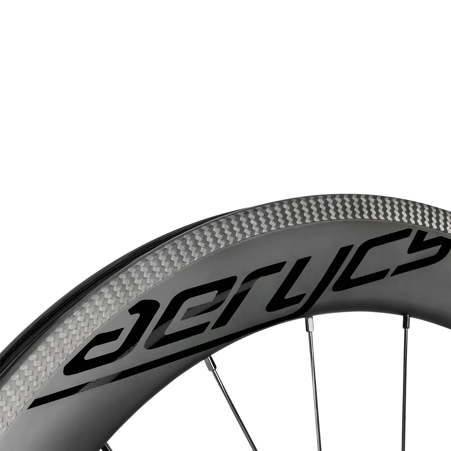 Unsere Felgen bestehen aus hochmodularem Toray T1000 Carbon – einem Werkstoff, der im Profisport für sein unschlagbares Verhältnis aus Gewicht und Steifigkeit geschätzt wird. Mit einer 55 mm hohen Felge treffen aerodynamische Vorteile auf präzises Handling – mit einer gut designten, dezenten Bremsflanke.