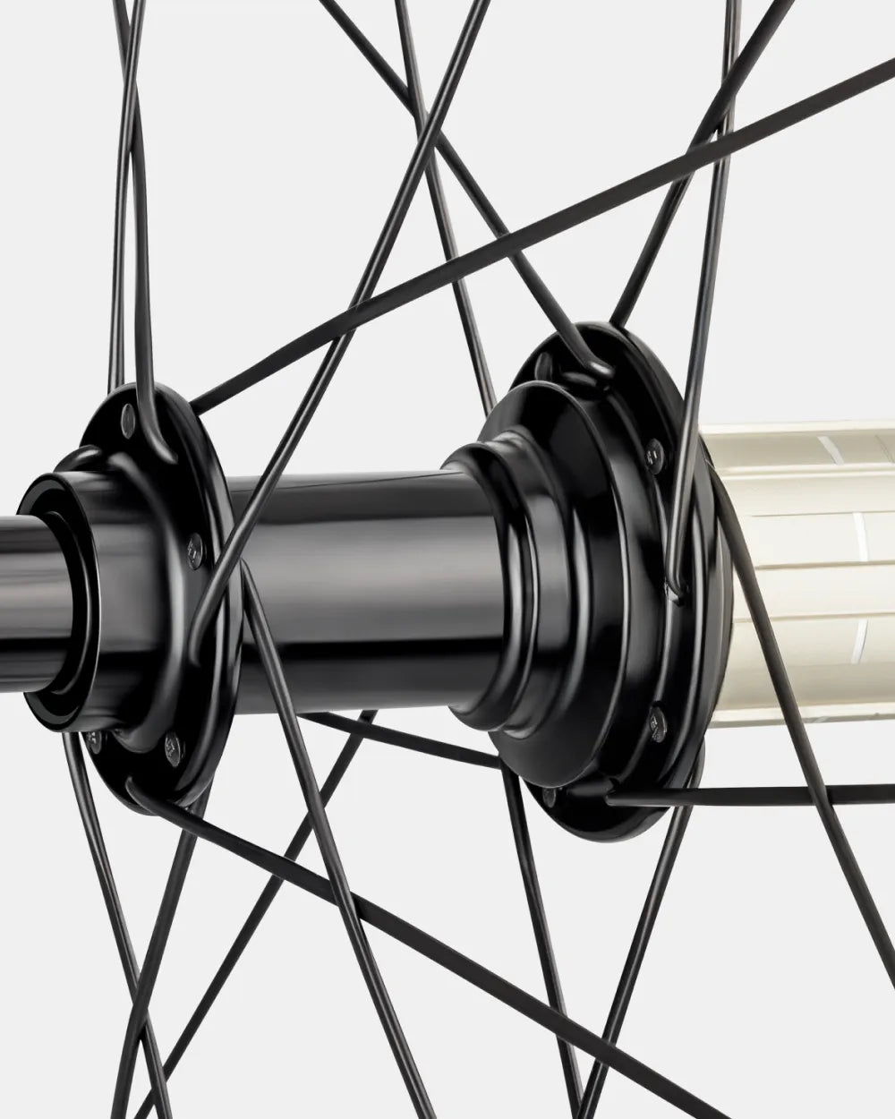 Die flachen Messerspeichen reduzieren den Luftwiderstand signifikant und sorgen für eine kraftvolle Kraftübertragung, selbst bei Sprints oder in Anstiegen.