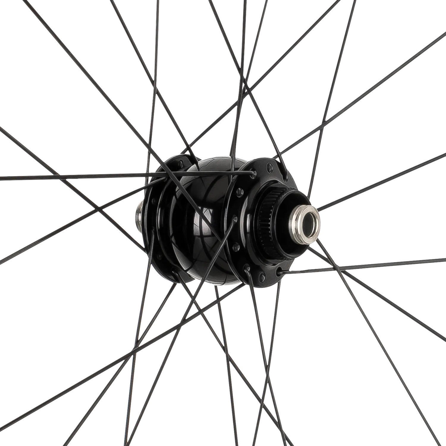 Vorder- und Hinterrad werden mit 2 fach gekreuzten Aerocomp Messerspeichen aufgebaut. Diese Messerspeichen haben in der Rotation der Laufräder einen deutlichen Aero Vorteil gegenüber der herkömmlichen Rundspeiche und können mit einer höheren Speichenspannung zentriert werden.