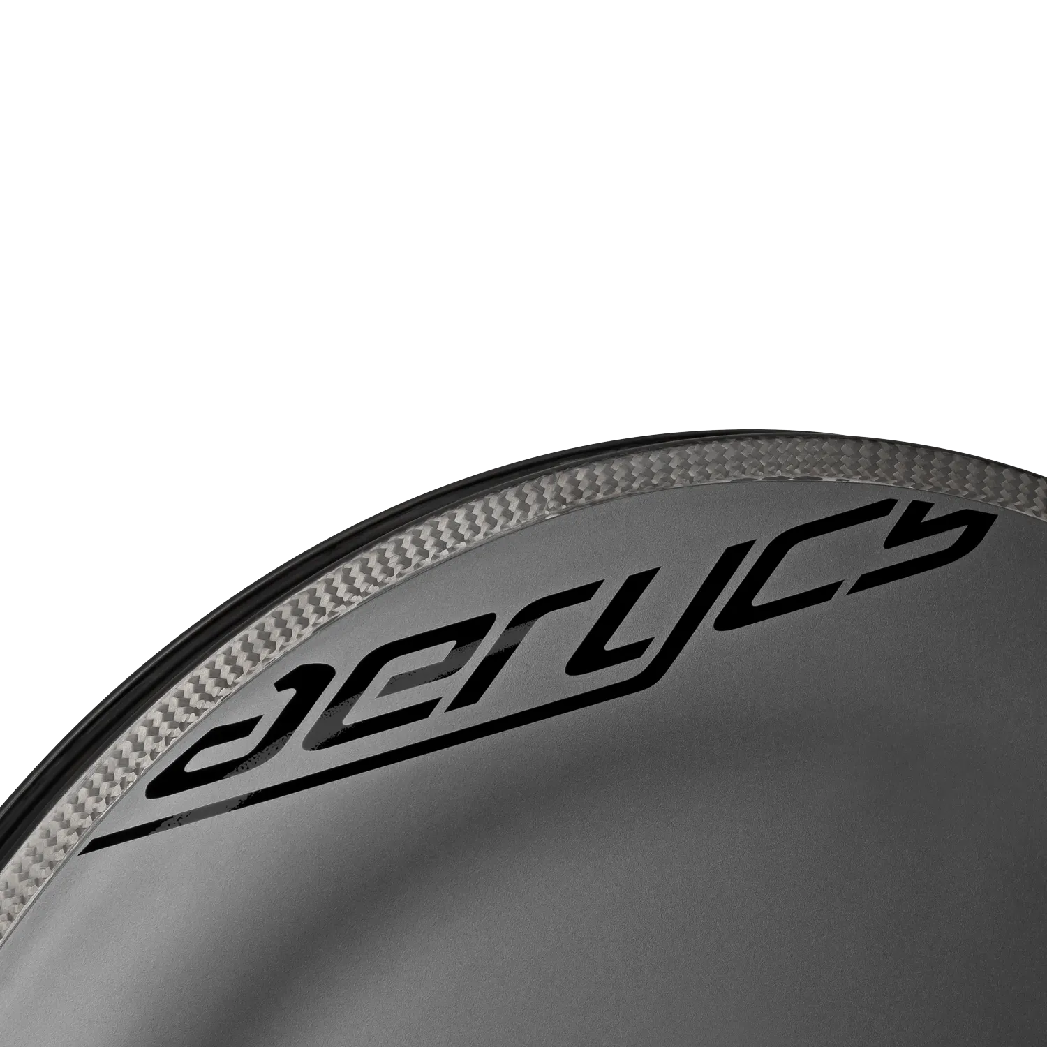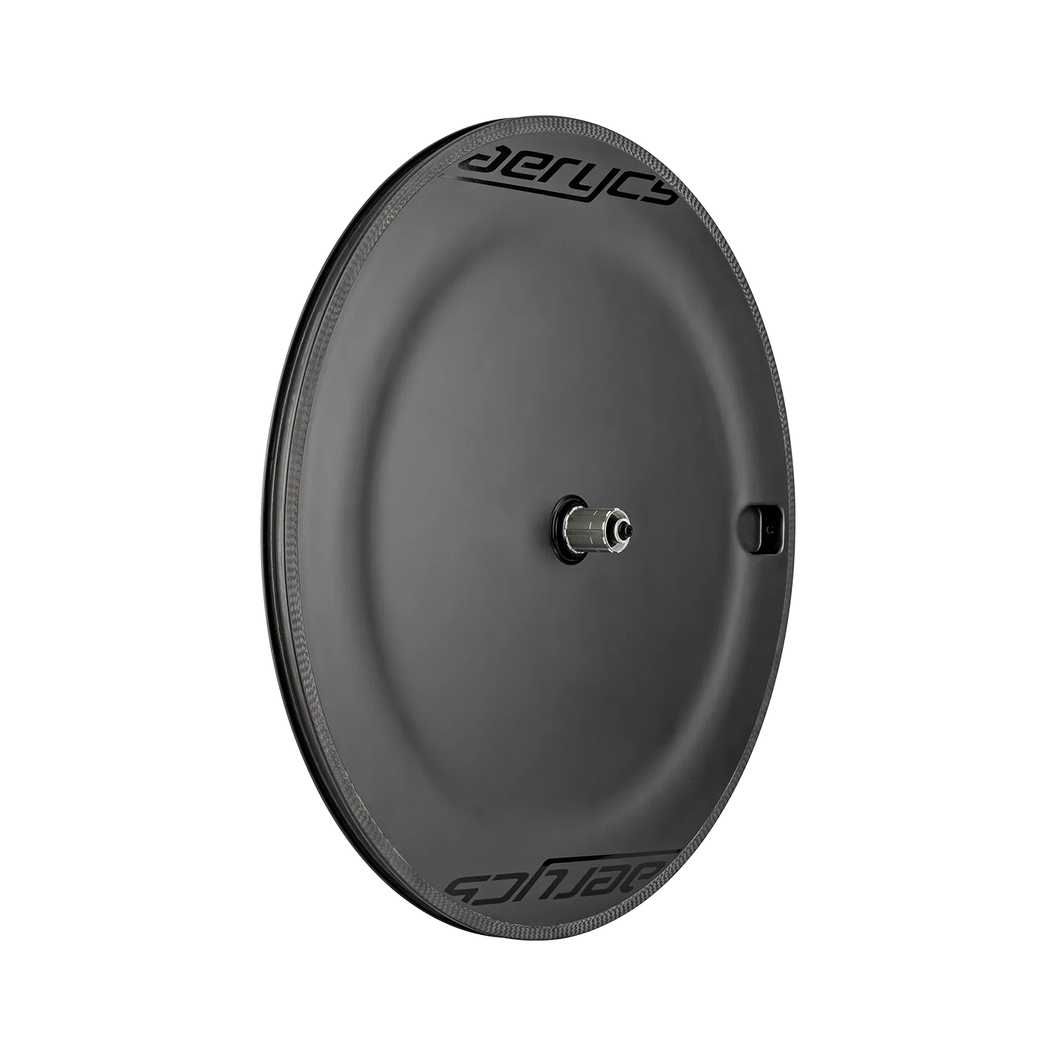 Die Frizzbee überzeugt im Vergleich zu den besten Konkurrenten und lieferte im Aerotesting hervorragende CdA-Werte. Das Innere des Scheibenrads ist mit Rohacell PMI aufgeschäumt. Die äußere Schicht besteht aus UD-Carbongewebe, bei dem die Carbonplatten nebeneinander gelegt werden anstatt sich zu überlappen. Dadurch sinkt das Gesamtgewicht des Laufrads und die Zugfestigkeit und Torsionssteifigkeit steigen. Trotz der tubeless-ready Fähigkeit, die deutlich mehr Material beim Aufbau benötigt, kann sich das Gewicht unserer Frizzbee Scheibe sehen lassen. Die Frizzbee Disc bauen wir mit der bewährten DT Swiss 350 Road Disc straightpull Nabe auf: eine preiswerte Hochleistungsnabe bei der Zuverlässigkeit auf Einfachheit trifft. Die Felgenbrems-Version ist mit der aerycs A1 straightpull Nabe ausgestattet. Eine aus Aluminium gefertigte Nabe, die dank Langlebigkeit und einfacher Wartung überzeugt.