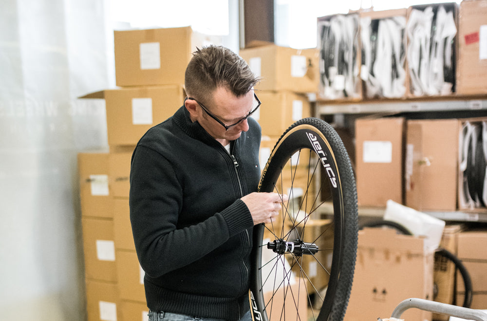 Unser Head of Product Robert prüft jedes Laufrad vor dem Versand. Aus unserer Werkstatt in Ellerau in Norddeutschland versenden wir ausschließlich geprüfte, getestete und freigegebene Laufradsätze.